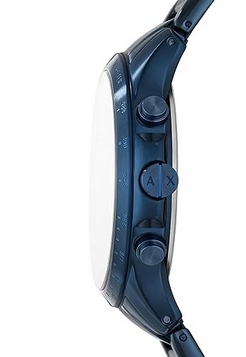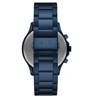 Blue plated stainless steel bracelet with bracelet deployant closure; interchangeable with Armani Exchange 22mm watch straps
