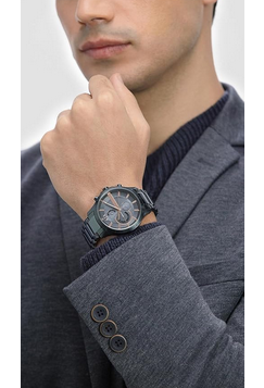 Case size: 46mm; Band size: 22mm; quartz movement with 3-hand analog display; mineral crystal face