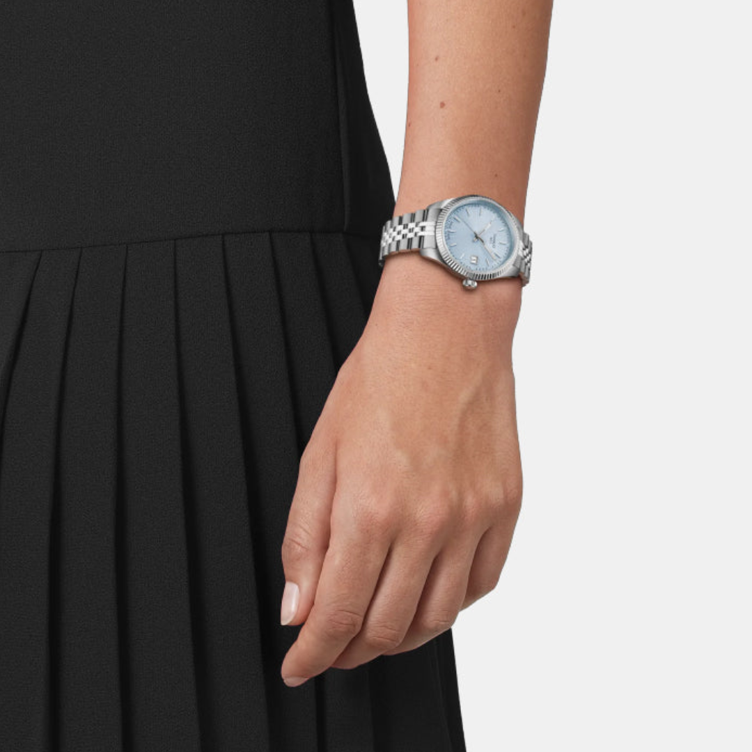 The ice blue dial gives this Ballade model a light, contemporary feel while preserving its classic elegance. It is ideal for women who appreciate subtle colour and refined design. It delivers lasting value through its precise movement, durable construction, and elegant styling.