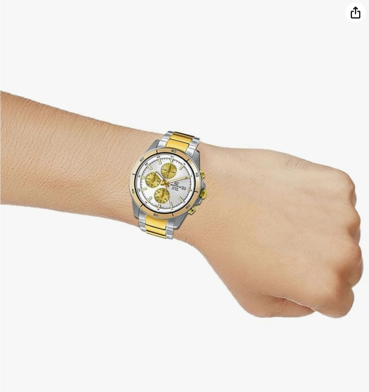 A mid-size standard EDIFICE chronograph. It uses a solid stainless steel band.