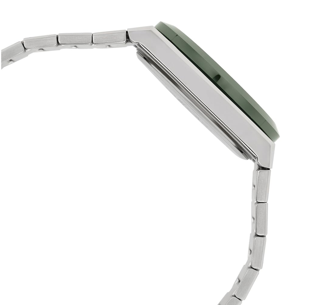 The flat stainless-steel case and band feature meticulous mirror and hairline polishing, and the dial is finished with sophisticated pattern printing, elevating the elegance of the overall design. The smaller case measures 39.5 mm, delivering both style and wearability.