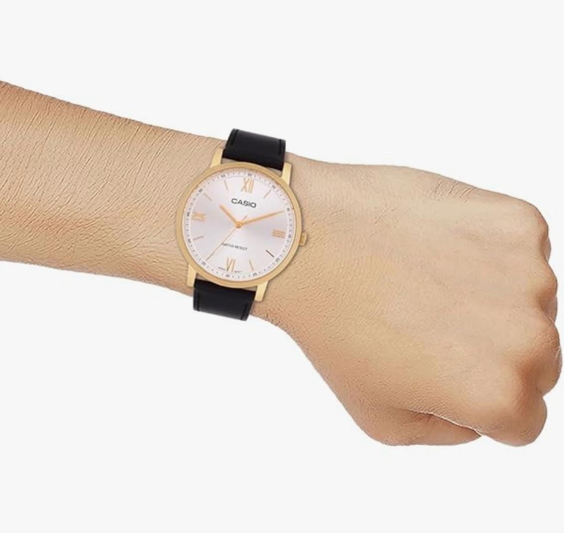 Enticer collection by Casio. Encased in a 45.5 mm case, the silver round