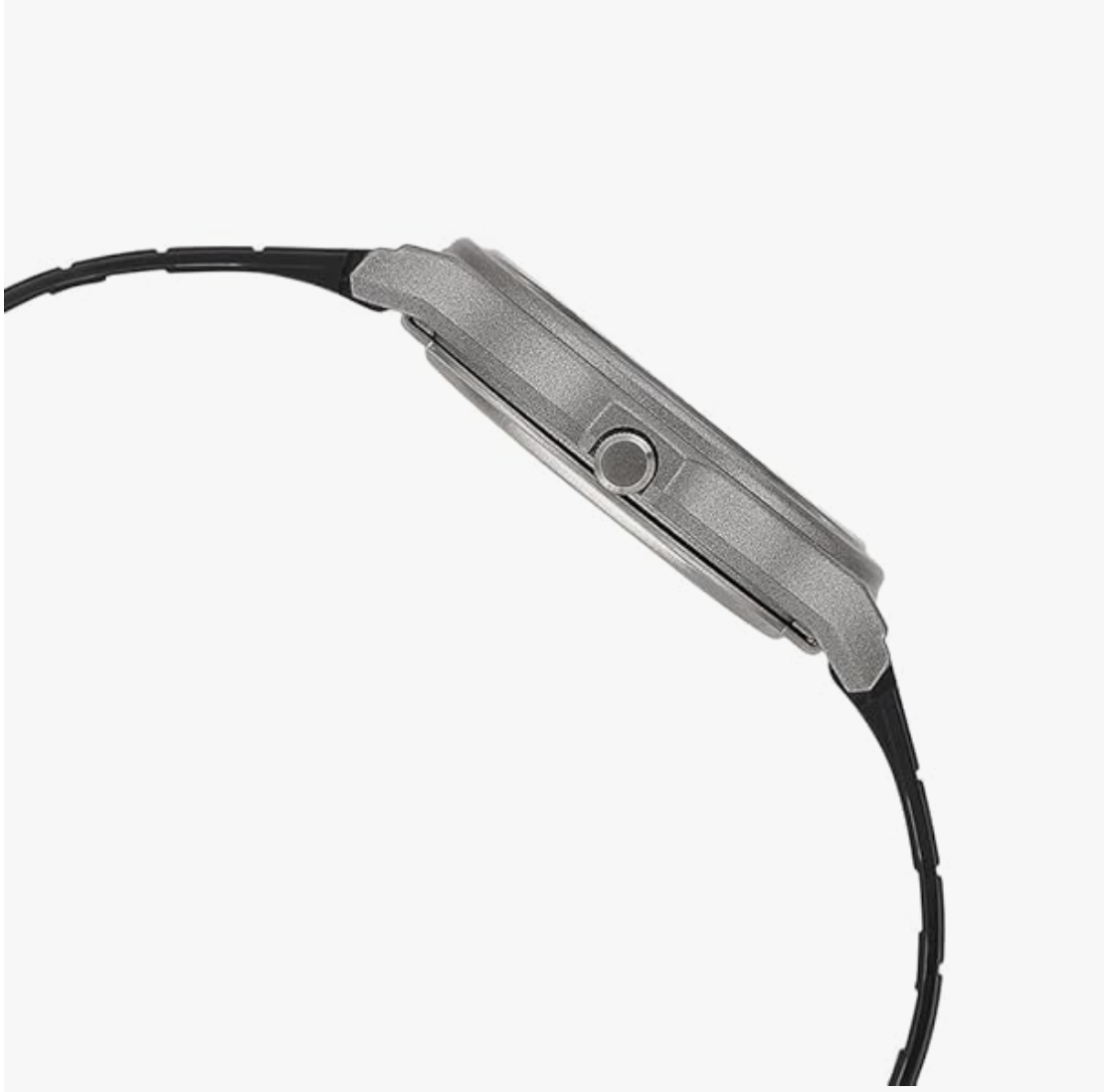 black hue that enhances the look of the watch. Safeguarded by a resin