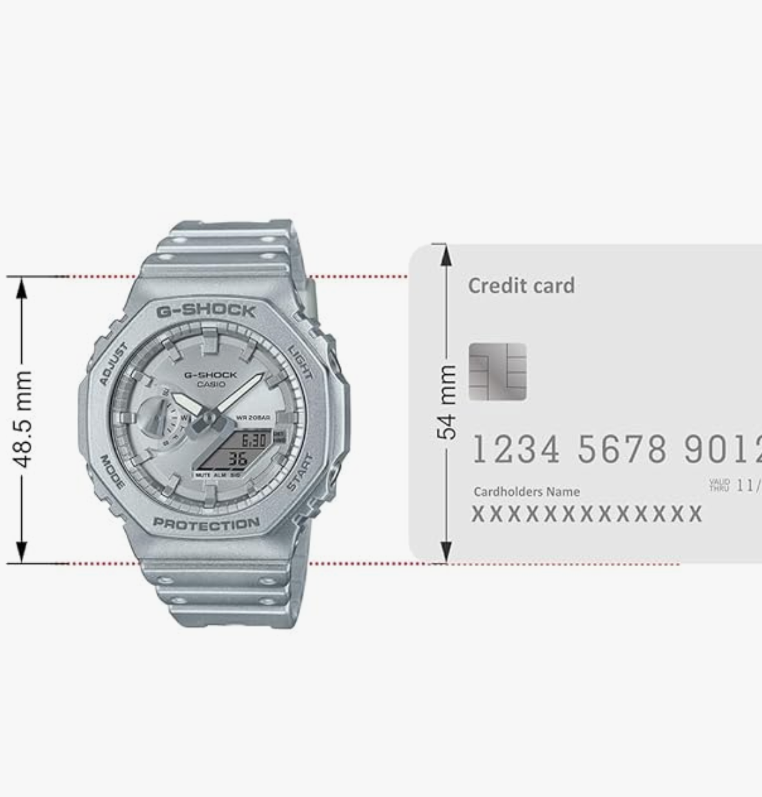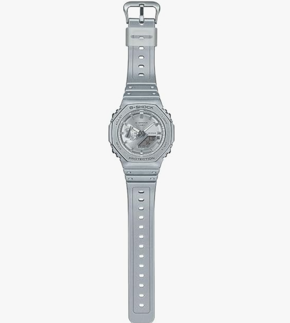 G-Shock. Housed in a 48.5 mm case, the dial is shielded with mineral