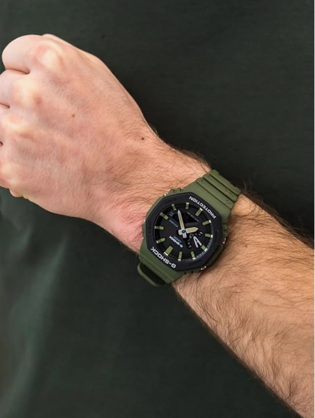 Discover Casio watch for men, featuring a black dial, a green strap made