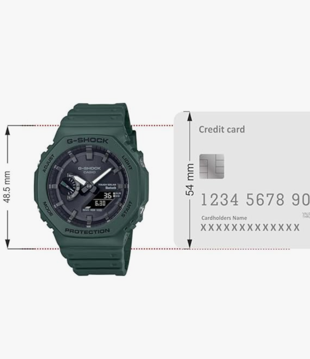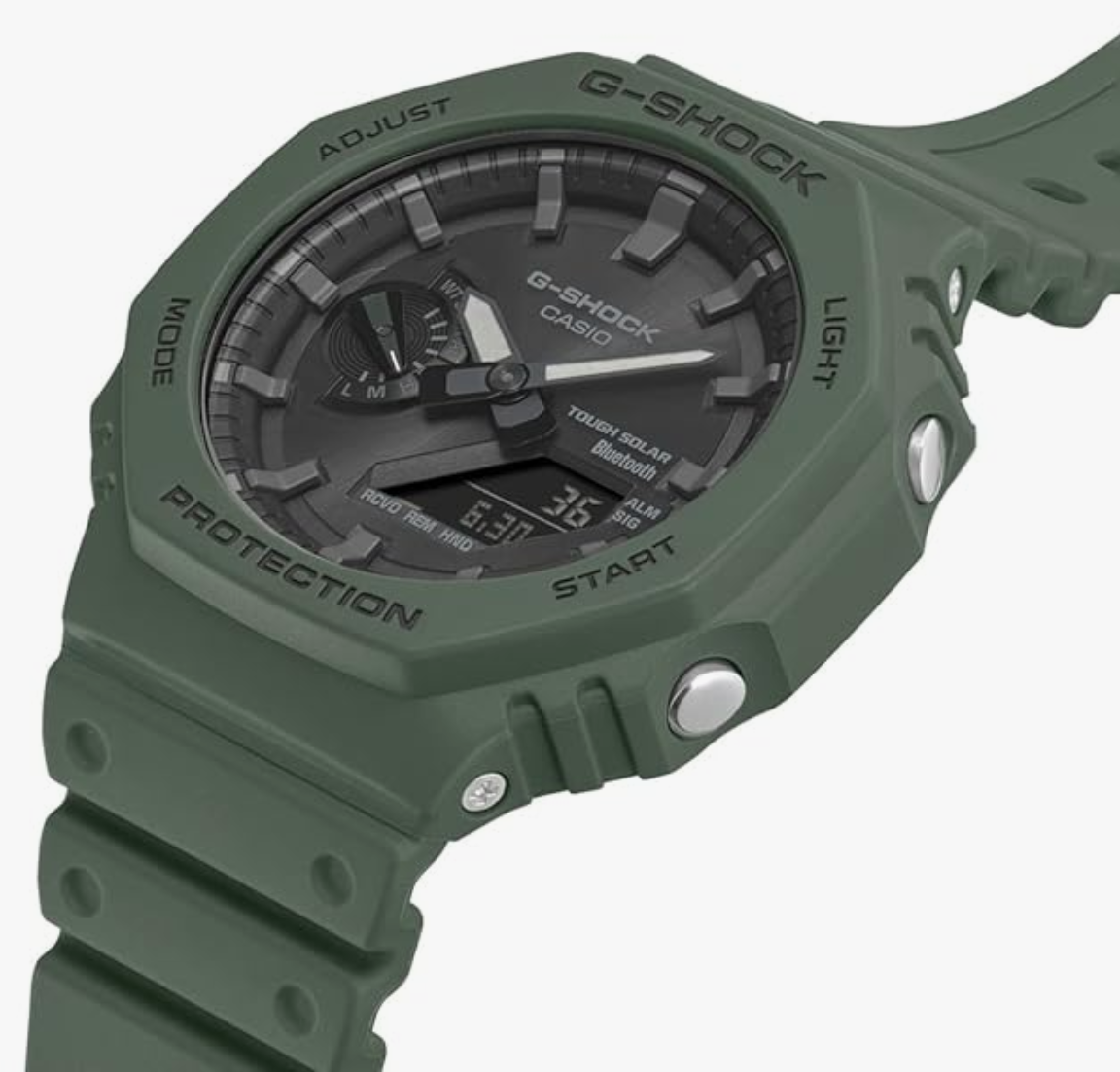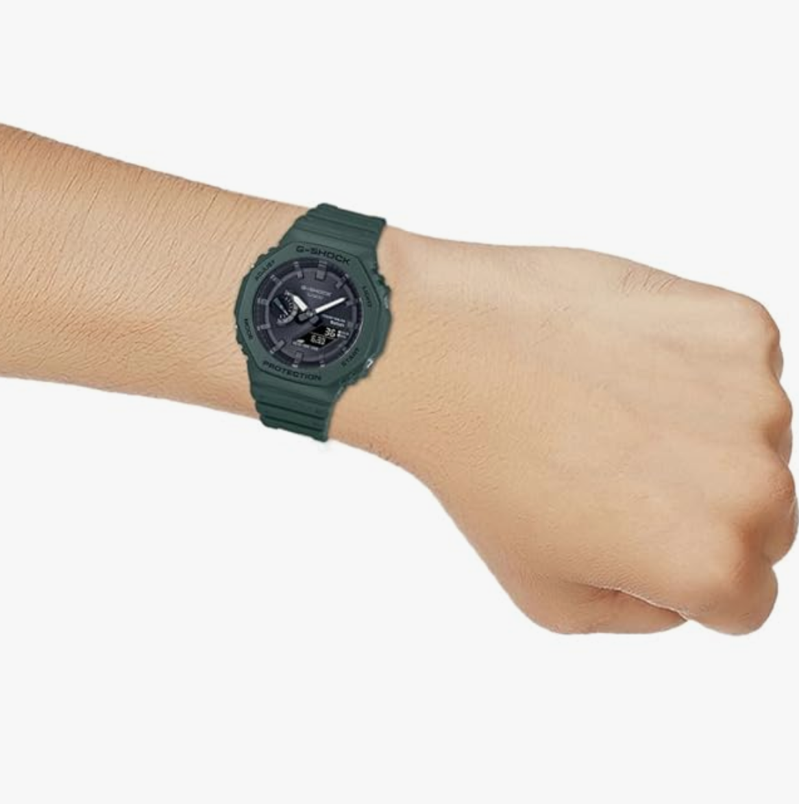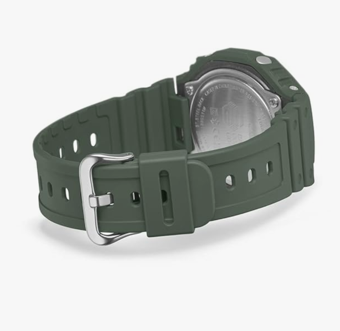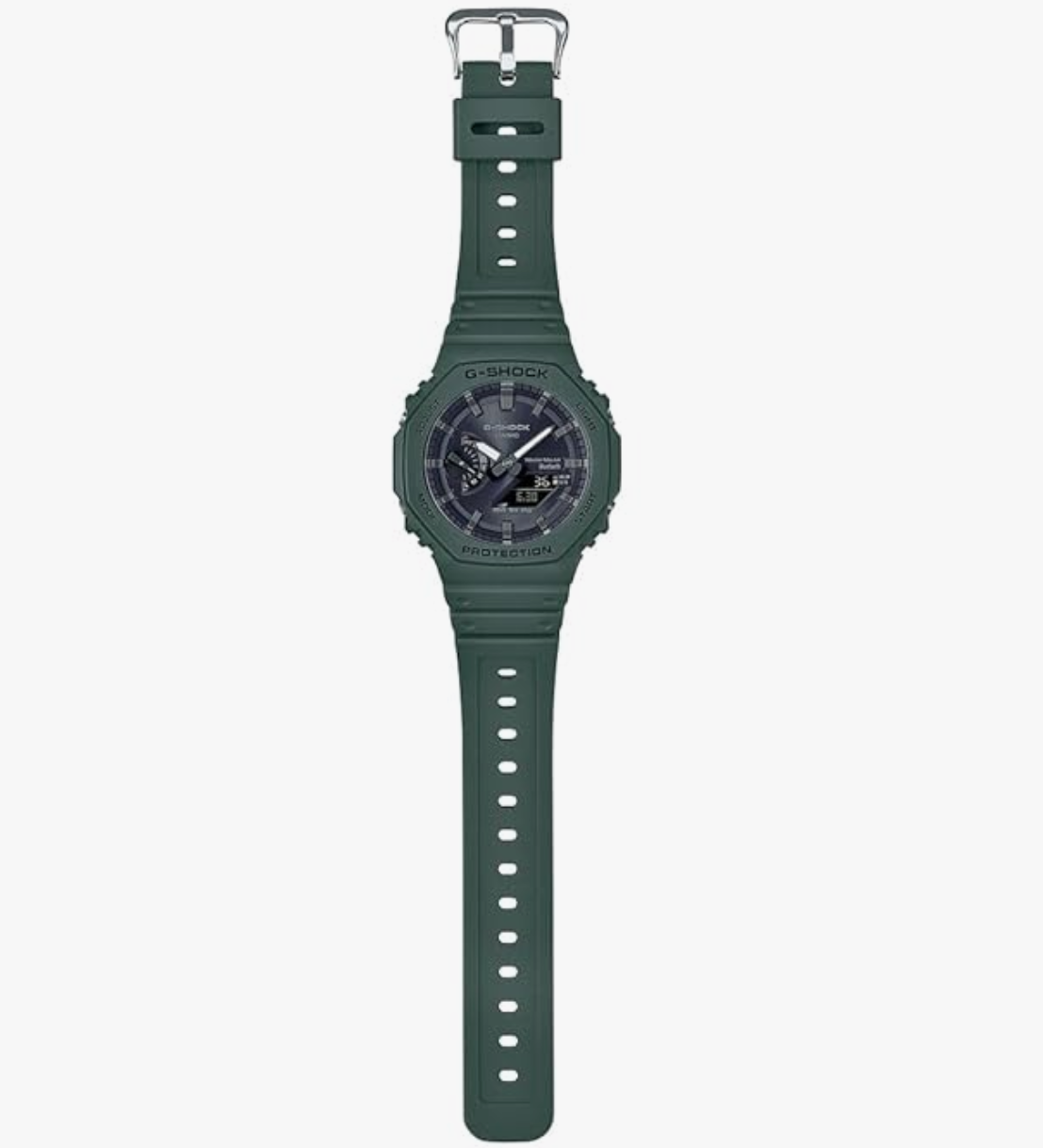 modern-day style. Its resin strap comes in a green hue that elevates the