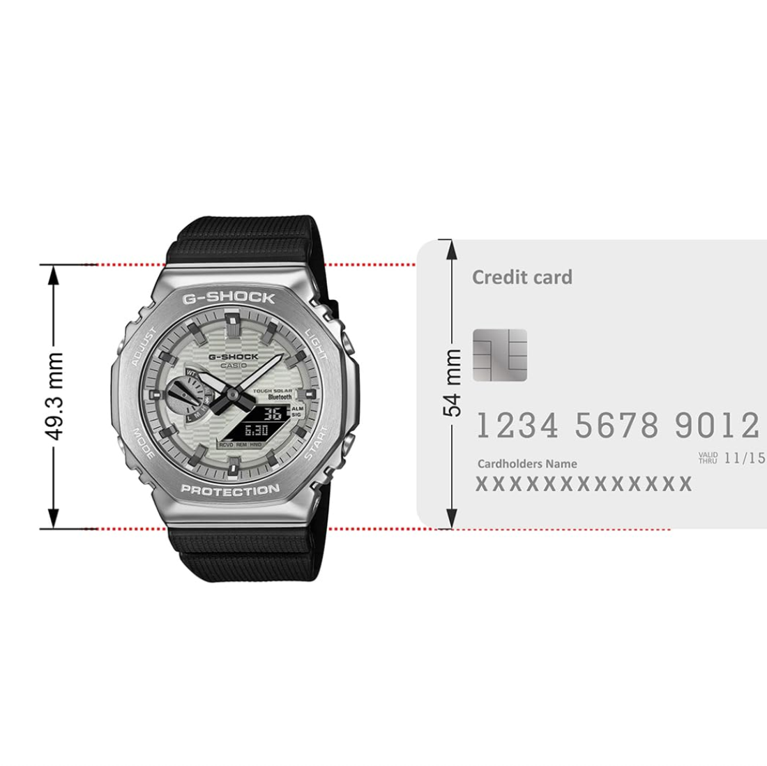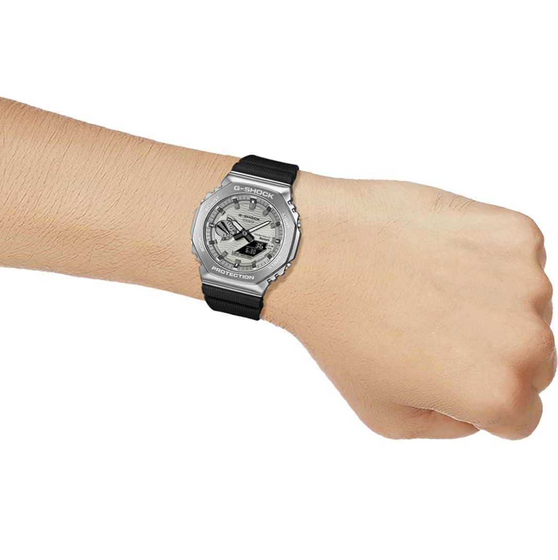 with burgundy dial and silvery indexes, or the GBM-2100A-8B with light