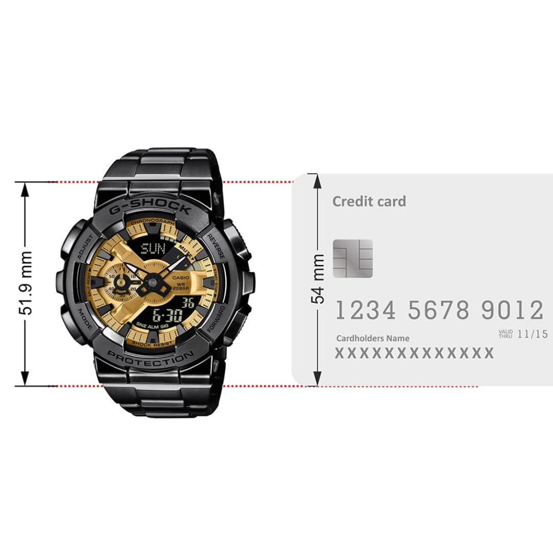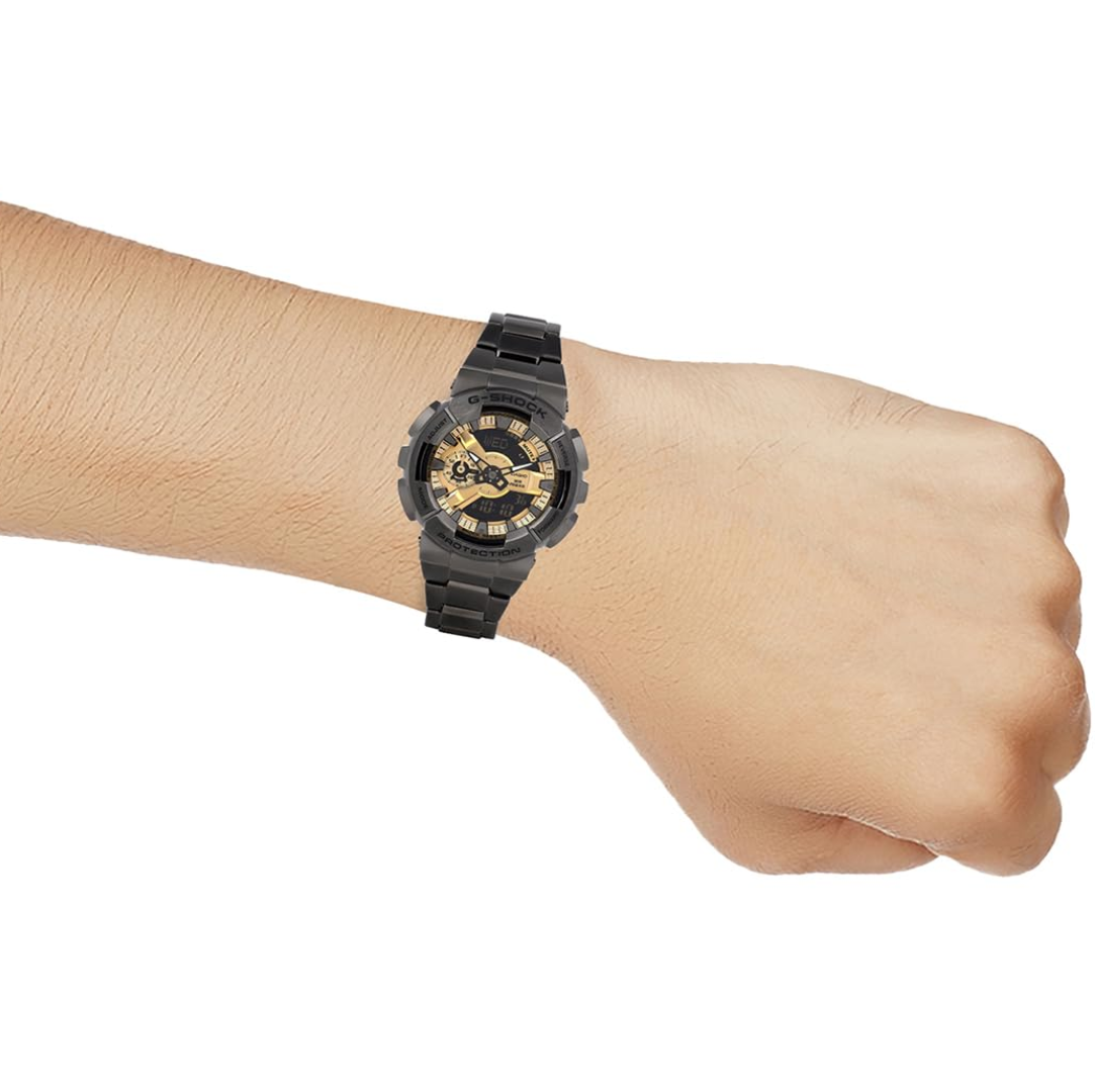 With a metal band, all-black ion plating, and dial in a gold color, the