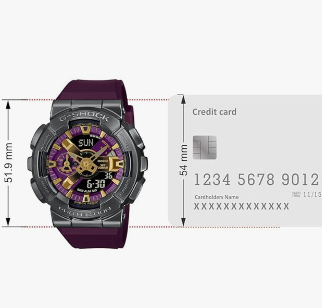G-Shock. Housed in a 48.8 mm case, the dial is shielded with mineral