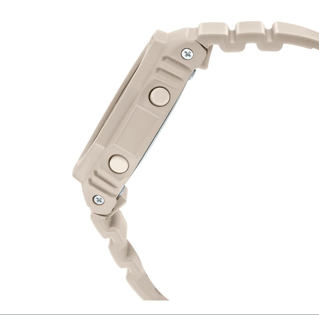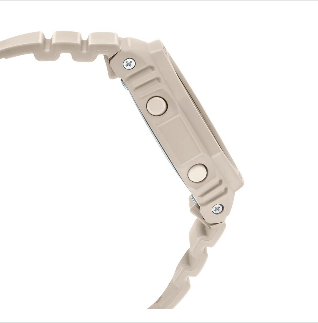 collection by Casio. Protected by a sturdy case, the beige round dial is