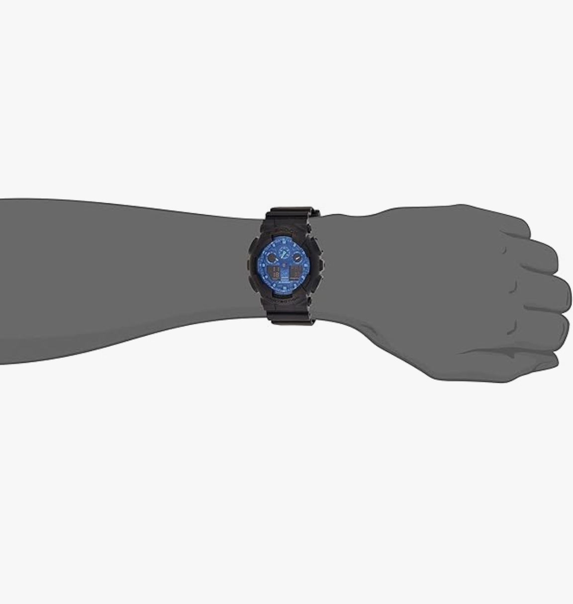 flaunts a black hue that accentuates the look of the watch. The blue