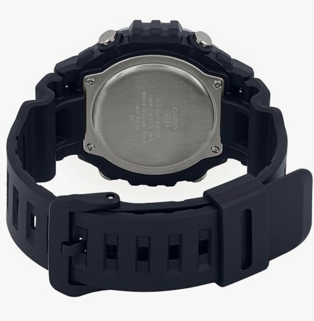 resin strap comes in a black hue that elevates the look of the watch.