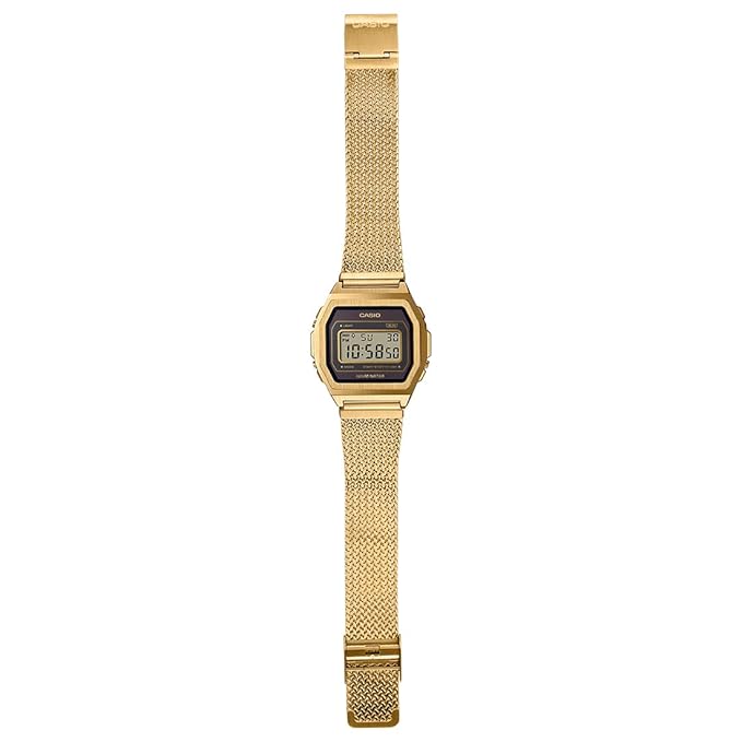4. Casio Unisex Vintage A1000MGA-5DF Black Digital Dial Gold Stainless Steel Mesh Band