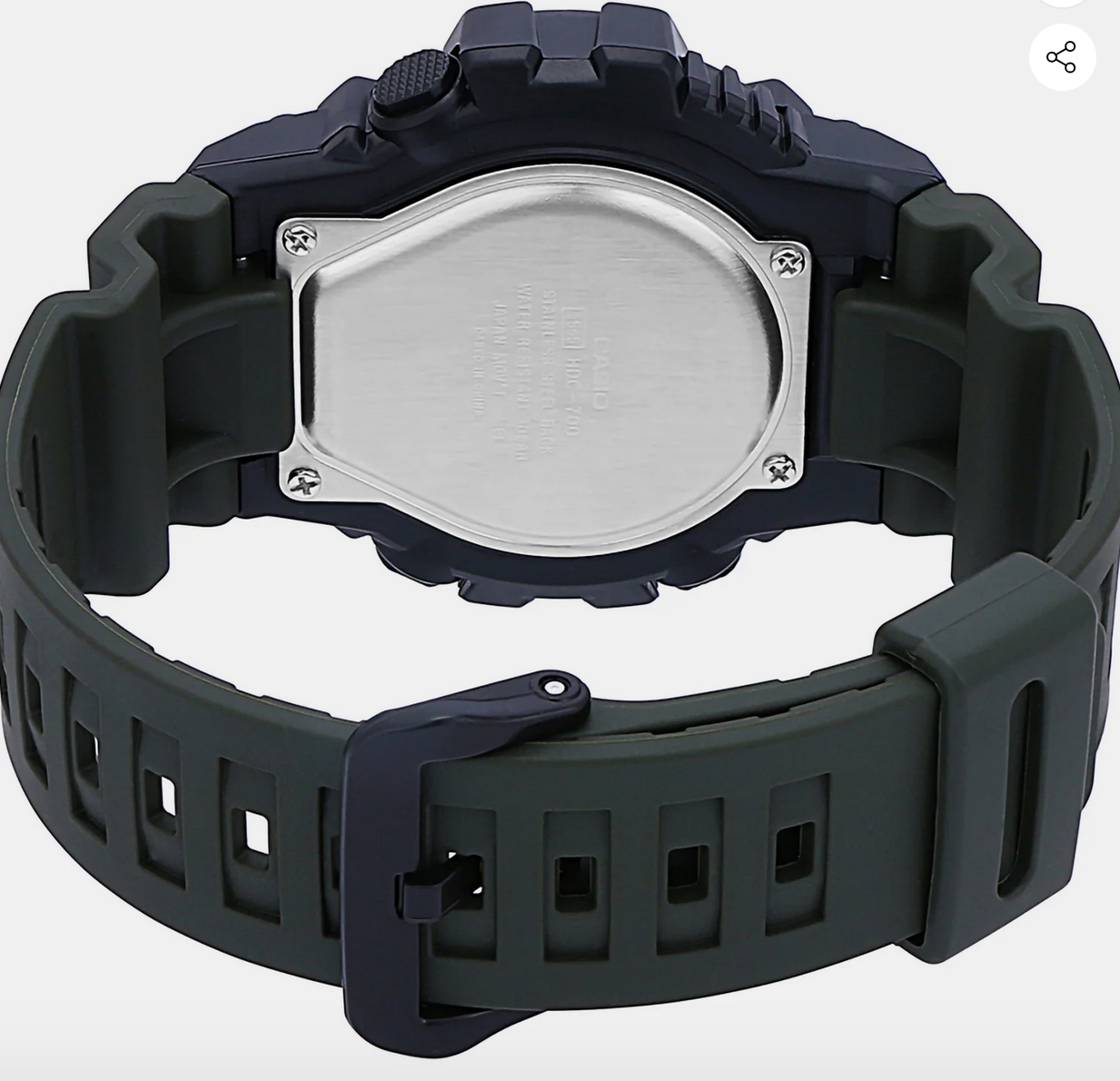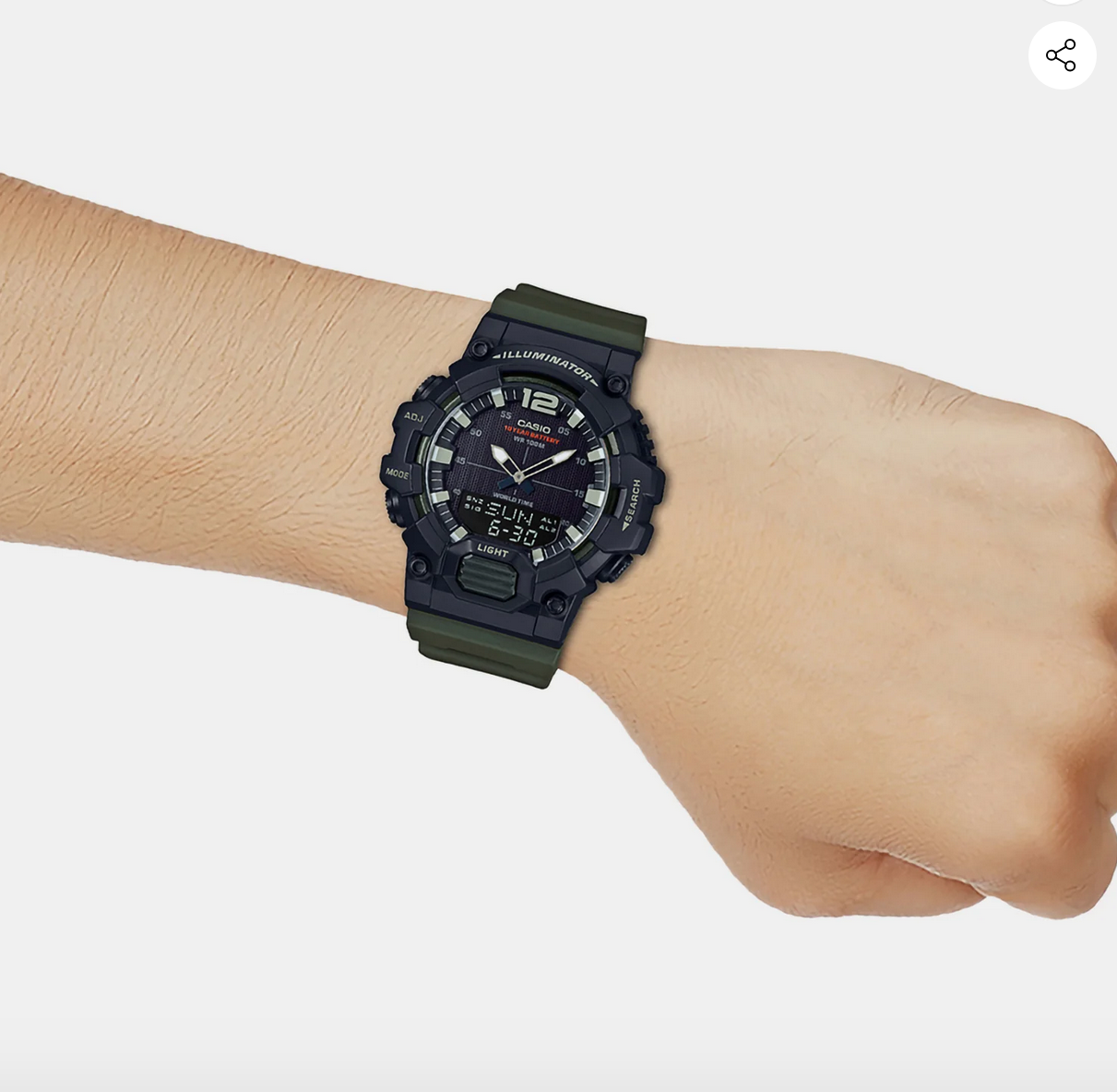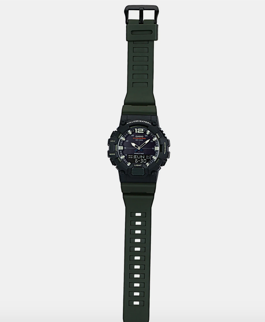 Discover Casio watch for men, featuring a black dial, a green strap made