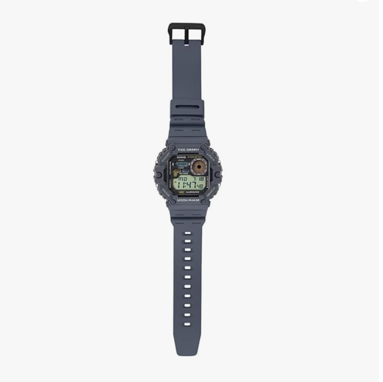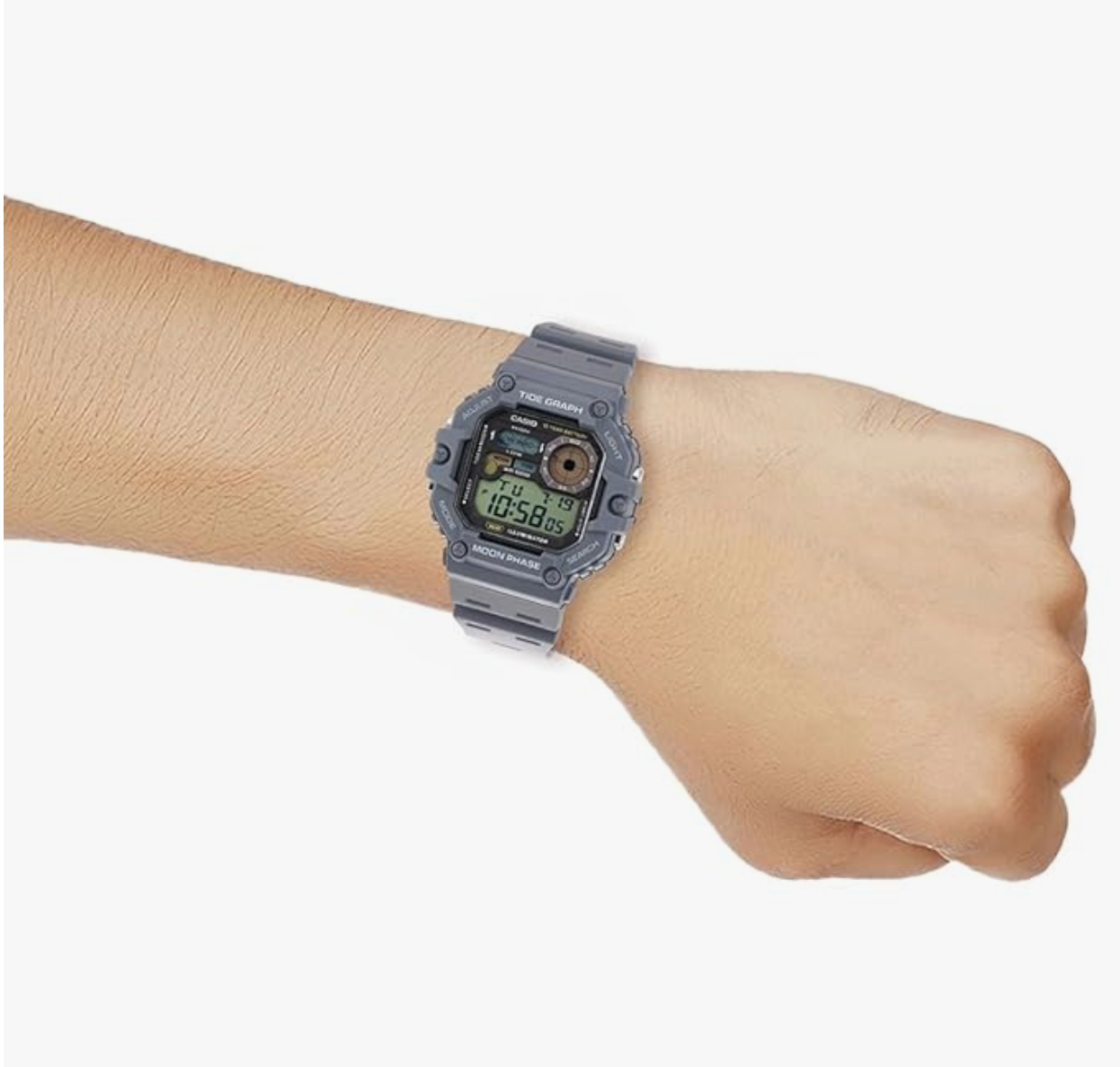 collection by Casio. It displays chronograph functionality and works on a