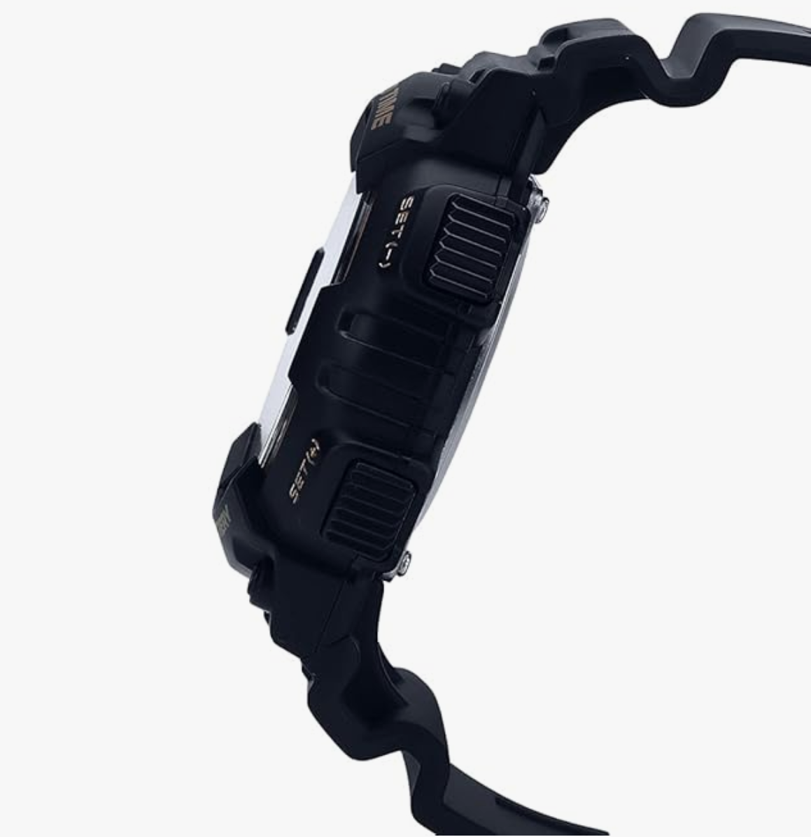 of silicone in a round case. Built with mineral glass and stainless