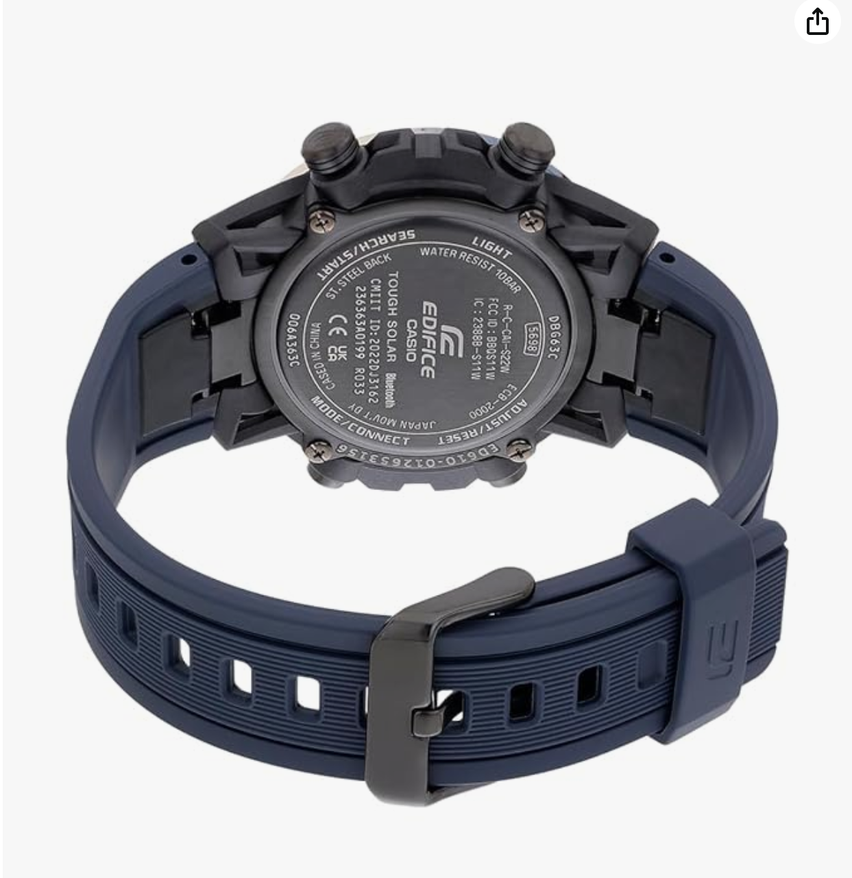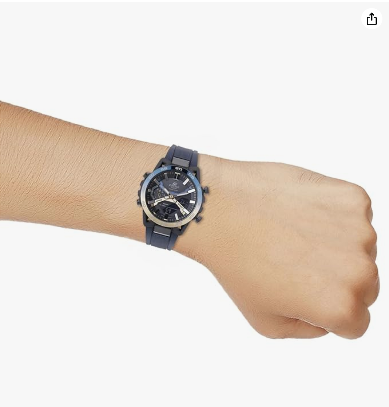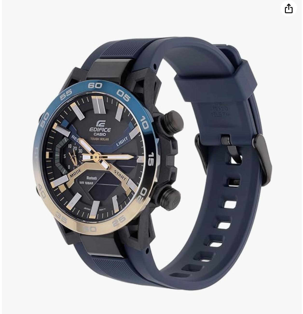 chronograph. The resin strap showcases a blue hue that uplifts the look