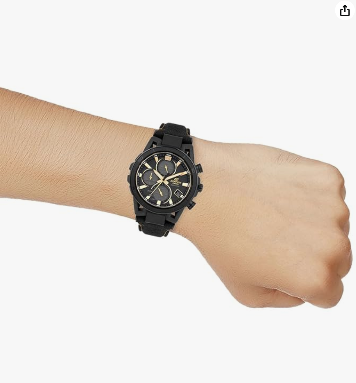 Edifice collection by Casio. Its polyester strap exudes a black hue that