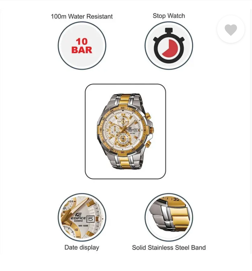 Flaunting a silver and gold stainless steel design, this Casio watch