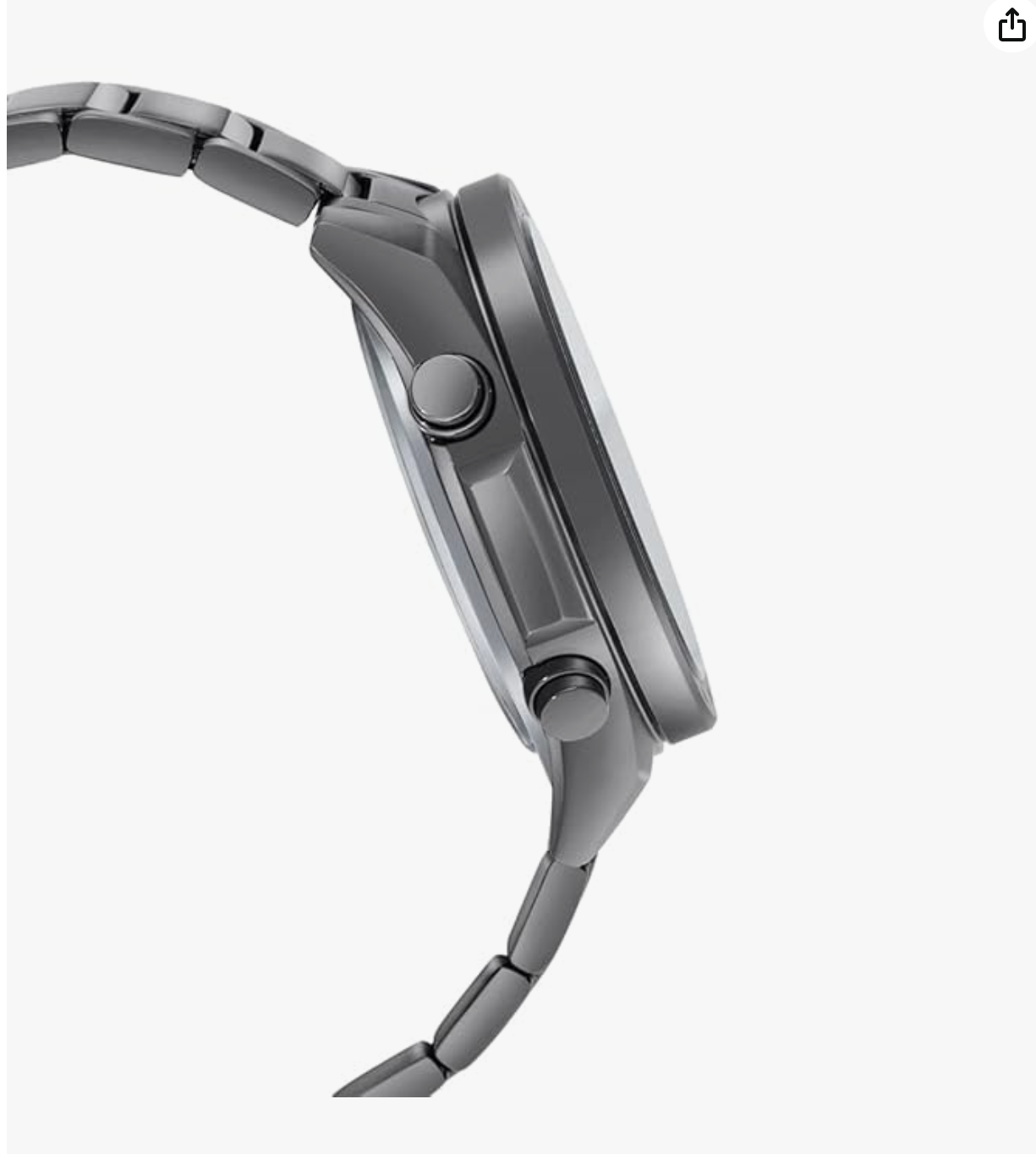 timepiece. Its stainless steel strap vaunts a greyl hue that enhances