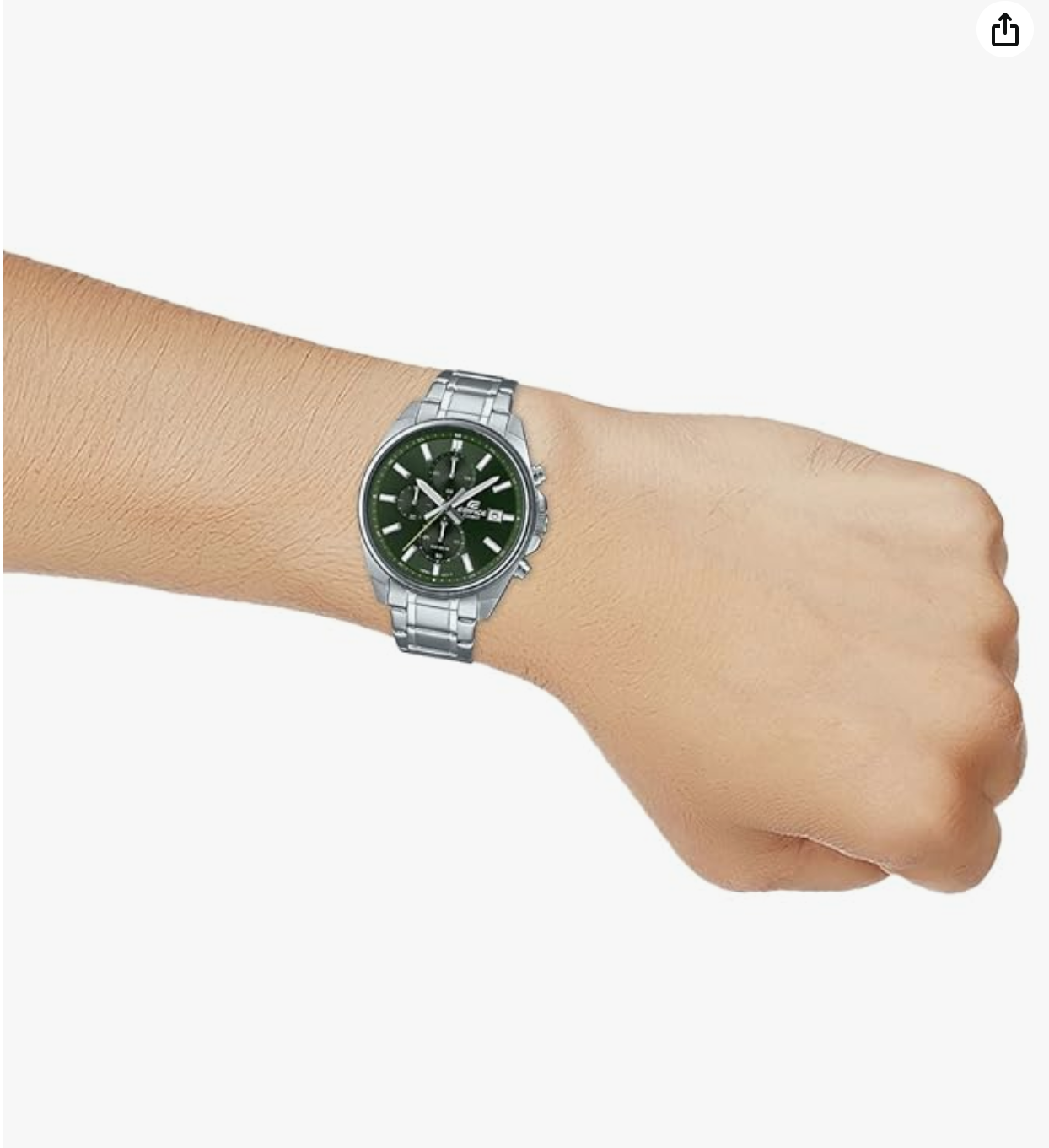 Chronograph collection by Casio. It has a round green dial with a thin
