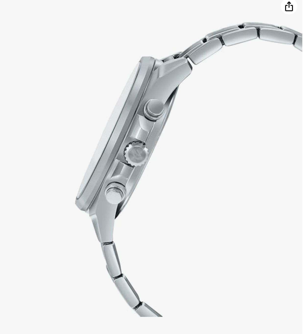 bezel for a simple, streamlined design. It bears chronograph quartz
