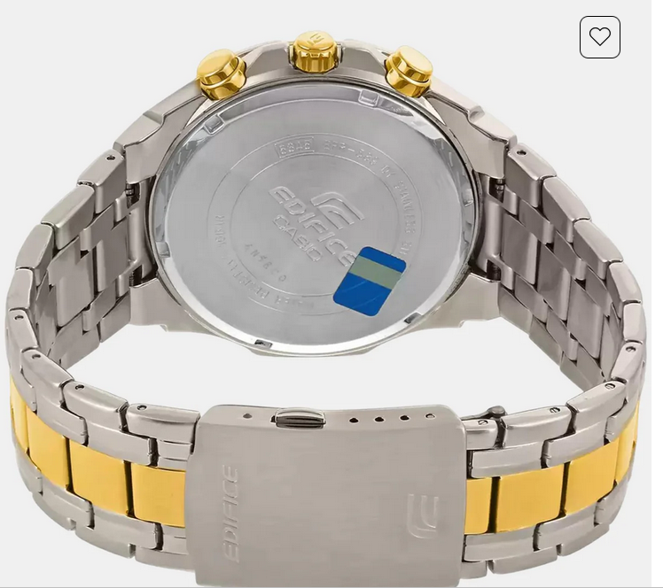 Discover Casio watch for men, featuring a black dial, a two tone strap made of stainless steel in a round case. Built with mineral glass and stainless steel body to balance clarity and durability. Dimensions include 50 mm dial size, 20 mm strap width, 12 mm profile for comfortable wear. Key features: quartz movement, chronograph display, 10 atm water resistance. A secure push-button deployment ensures a dependable fit.