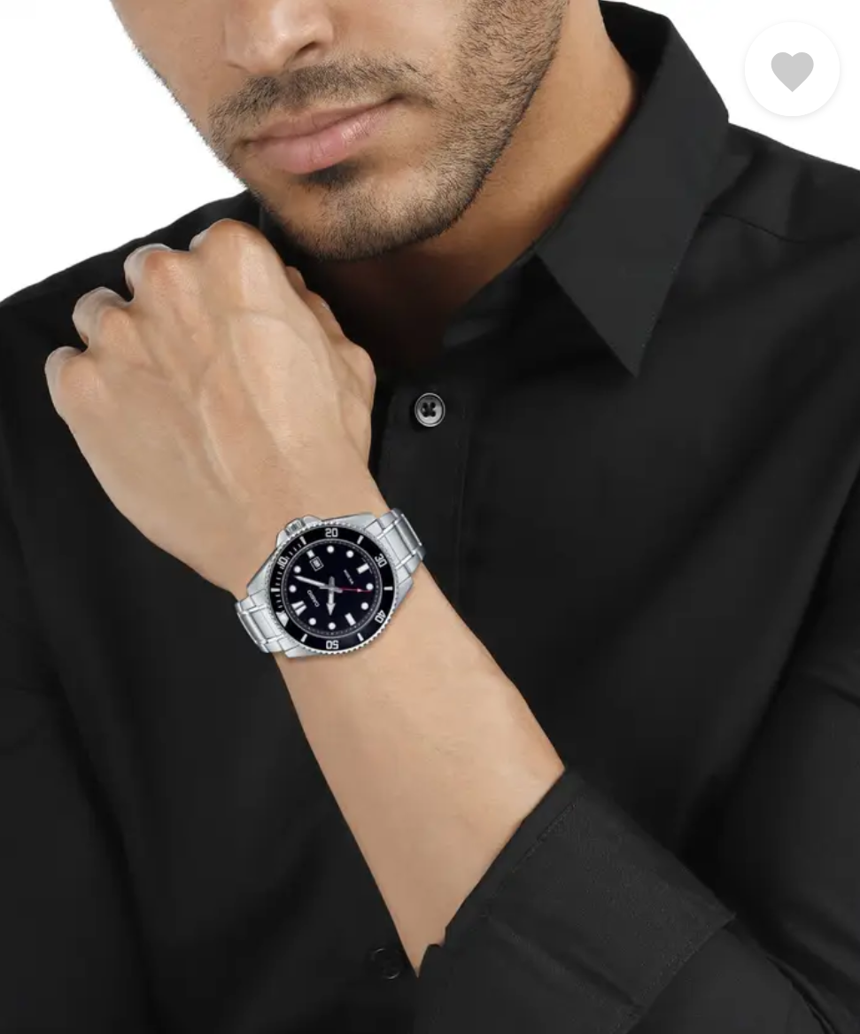 Take your full-metal analog style straight to the water. With water resistance up to 200 meters, a unidirectional rotating bezel, and screw-lock case back, this is a timepiece ready for whatever ocean sports or marine activities you are into. The sporty, yet classic design also features a handy date display, bringing practical utility to fashionable style.