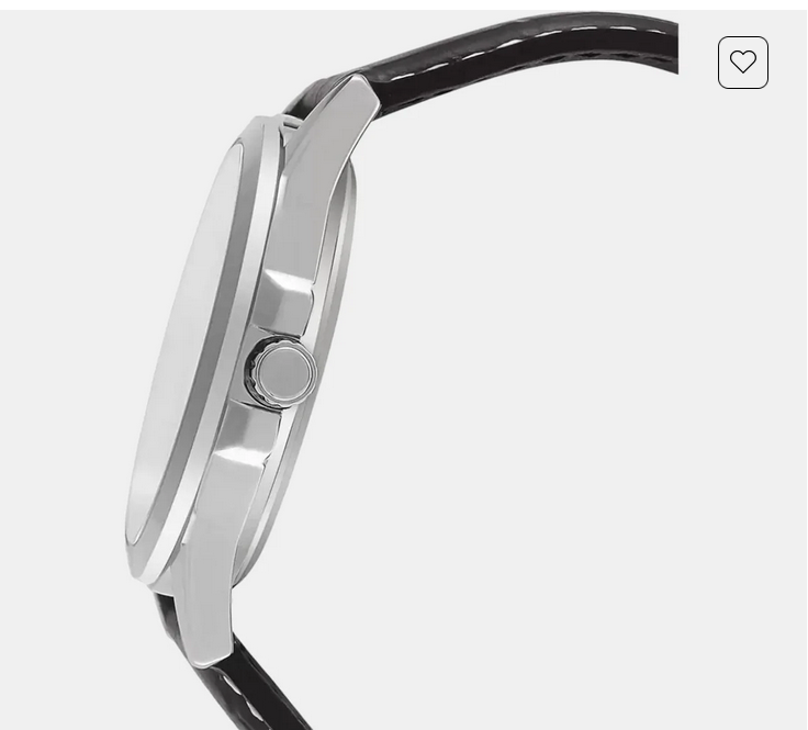 is powered by a quartz movement. It is fitted with a black leather