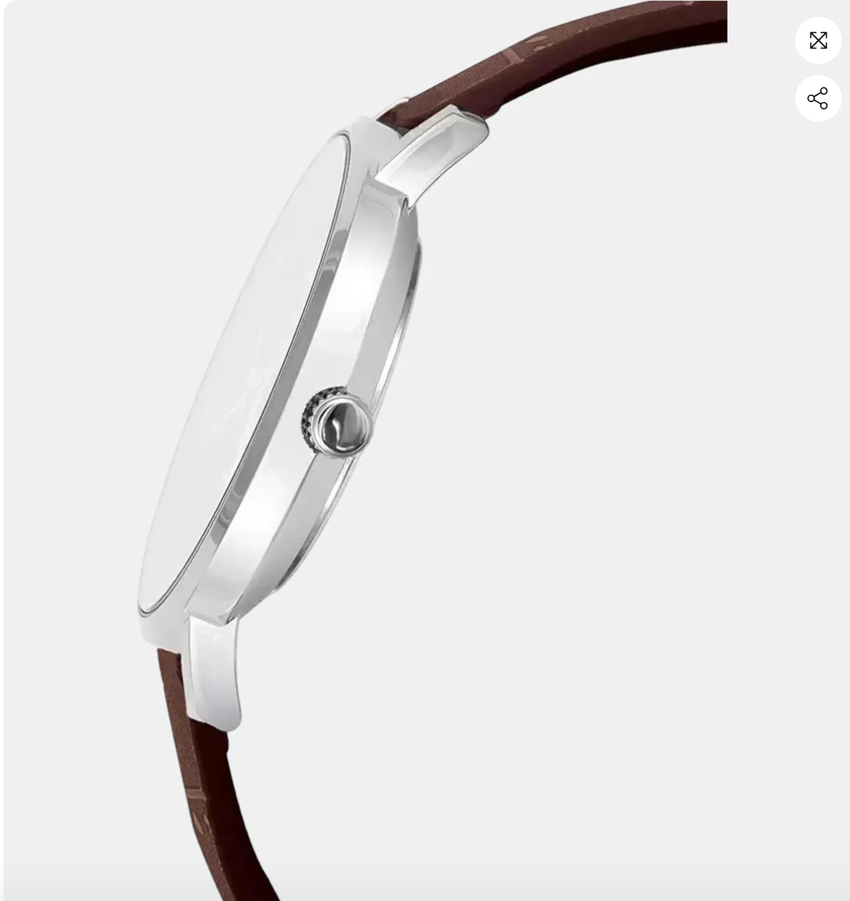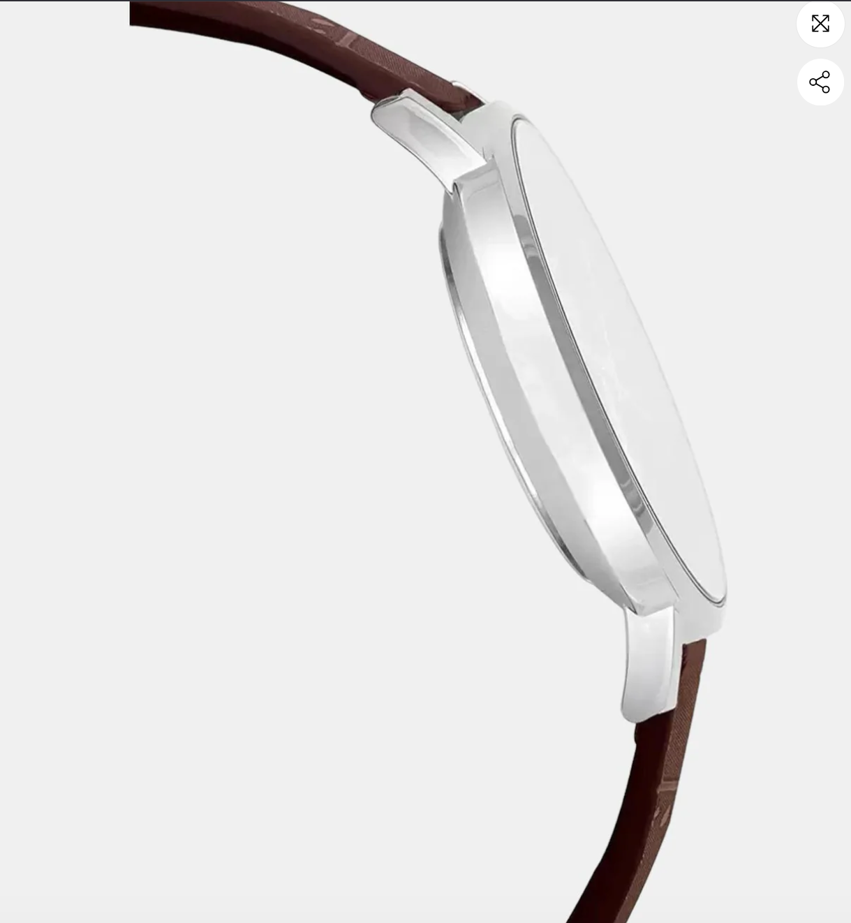 This Analog watch has a Round Silver dial with a dial diameter of 34