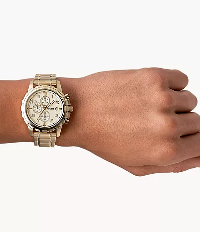 Drawing inspiration from mid-Century modernism, Dean’s clean lines and classic shape produce a subtle yet visually striking effect. With a gold-tone stainless steel case and bracelet, this versatile chronograph can take you from day to night with ease.