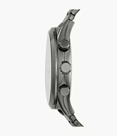 This 44 mm Fenmore features a blue satin dial with Roman numerals at the 6- and 12-hour markers, multifunction movement and a smoke stainless steel bracelet.