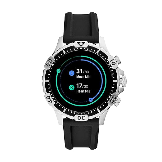 Classic design. Modern tech. This 46mm Garrett HR touchscreen smartwatch features a black silicone strap, speaker functionality, increased storage capacity and three smart battery modes to extend battery life for multiple days. Smartwatches powered with Wear OS by Google are compatible with iPhone and Android phones. Wear OS by Google and other related marks are trademarks of Google LLC. Supported features may vary between platforms. To avoid damage to your watch, only use with included charger. Do not use a USB hub, USB splitter, USB y-cable, battery pack or other peripheral device to charge. Product should be kept more than 20cm away from implanted medical devices to minimize potential for RF interference.