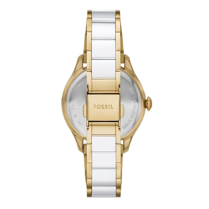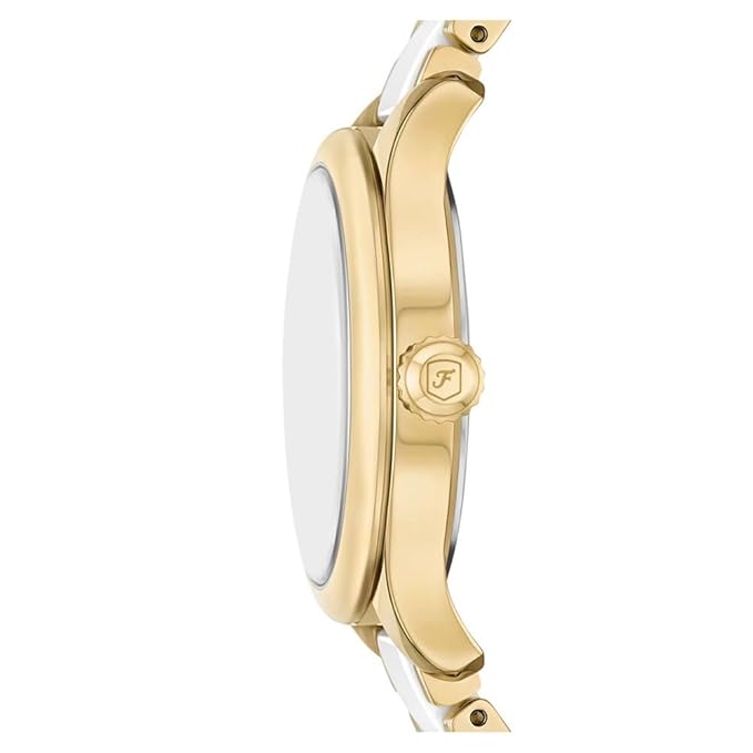 This 38mm round watch combines gold-tone and white ceramic craftsmanship with timeless design. Its gold-tone and white ceramic bracelet matches the sleek case, while the satin and sunray-finished white dial adds a refined touch. Designed for durability, the watch is both stylish and practical, making it a standout addition to any collection. Its clean and sophisticated design highlights lasting quality and attention to detail.