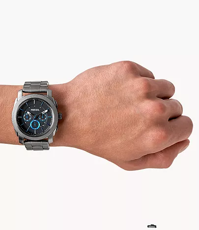 Ready for action? Our tough-but-timeless Machine is built to go the distance with stylish steel case and blue-accented dial.