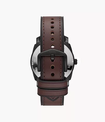 This 42mm Machine features a black sunray and textured dial, three-hand date movement and brown leather strap.