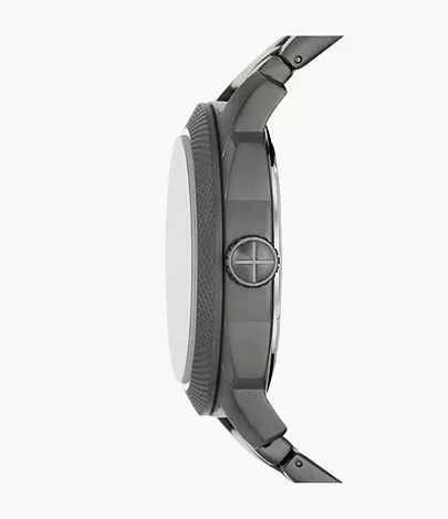 This 49mm Machine features a black sunray textured dial, three-hand date movement and smoke stainless steel bracelet.
