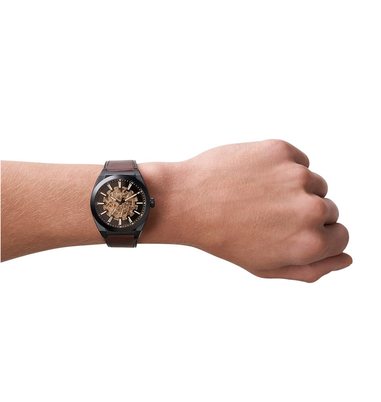 Everett collection by Fossil. Its genuine leather strap showcases a