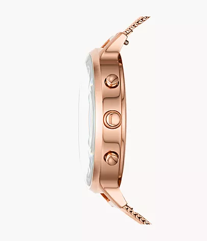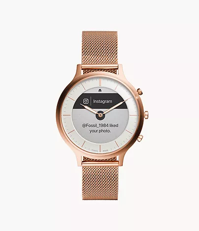 This product has one or more of the following defects: scratches on the case, scratches on the strap, small scratches on the display, damaged packaging. It is not possible to indicate the exact defect prior to delivery. Where smart meets style – this 42mm Charter hybrid smartwatch features a rose gold-tone stainless steel mesh bracelet and an always-on readout display so you can get your heart rate, message previews, weather and more at a glance, with 2+ weeks of battery life on a single charge.