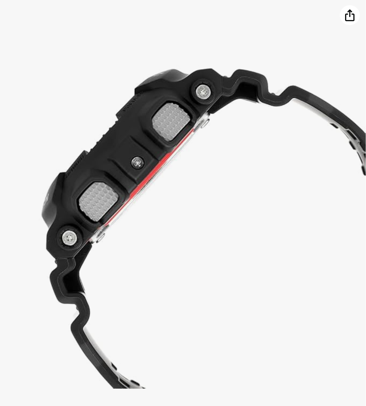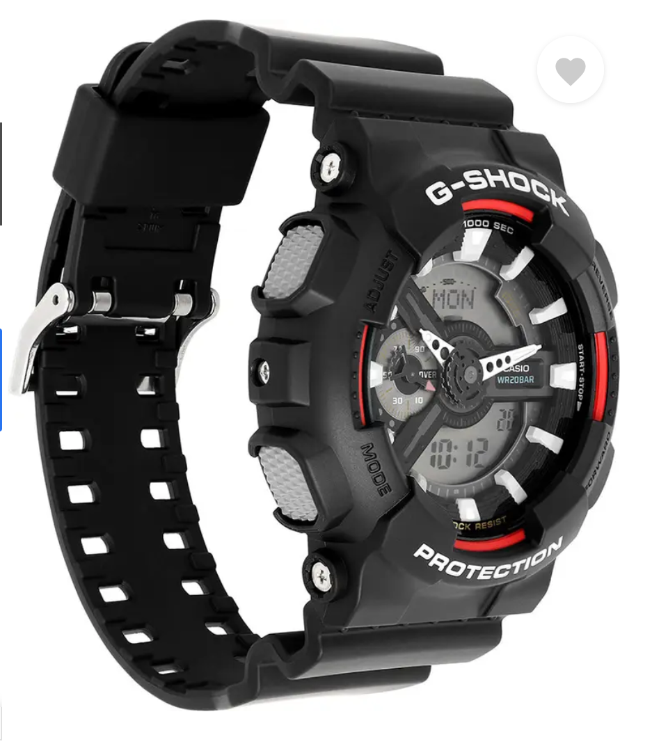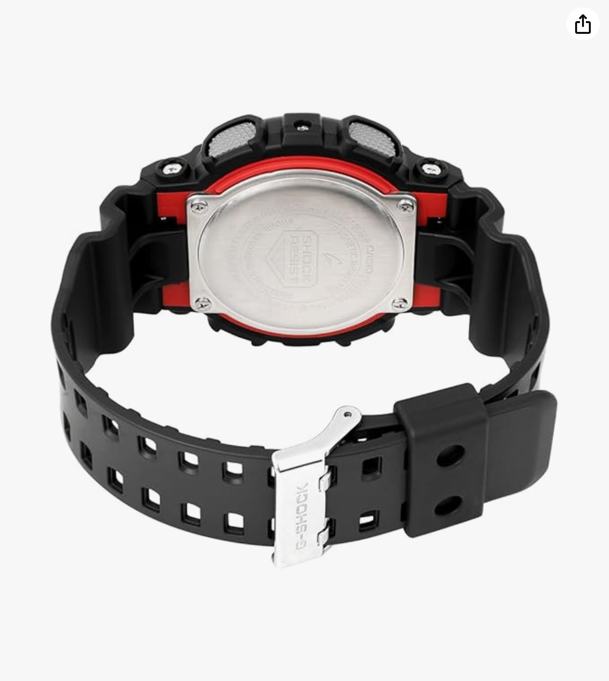 It exhibits crown for time adjustment. The resin strap flaunts a black