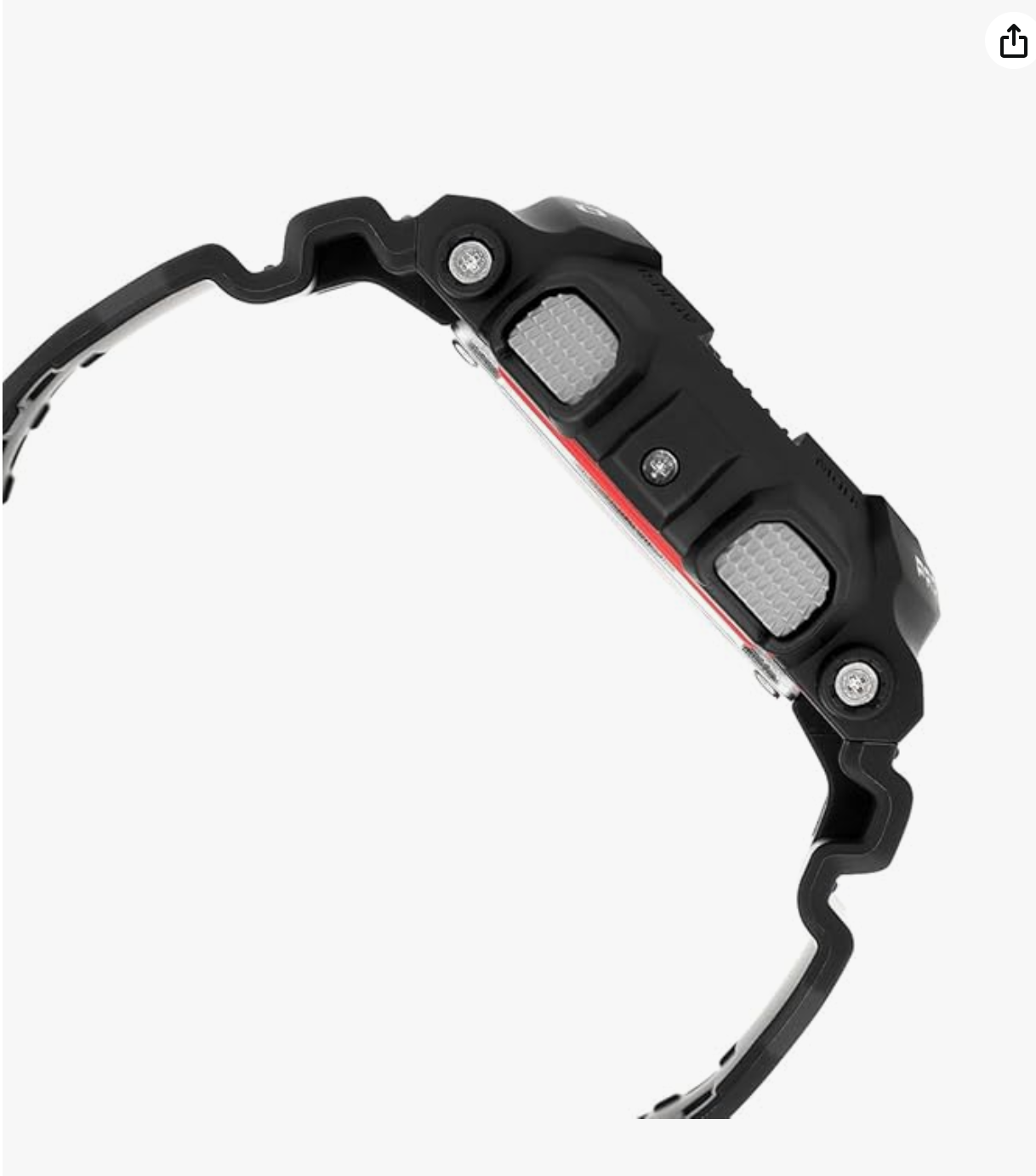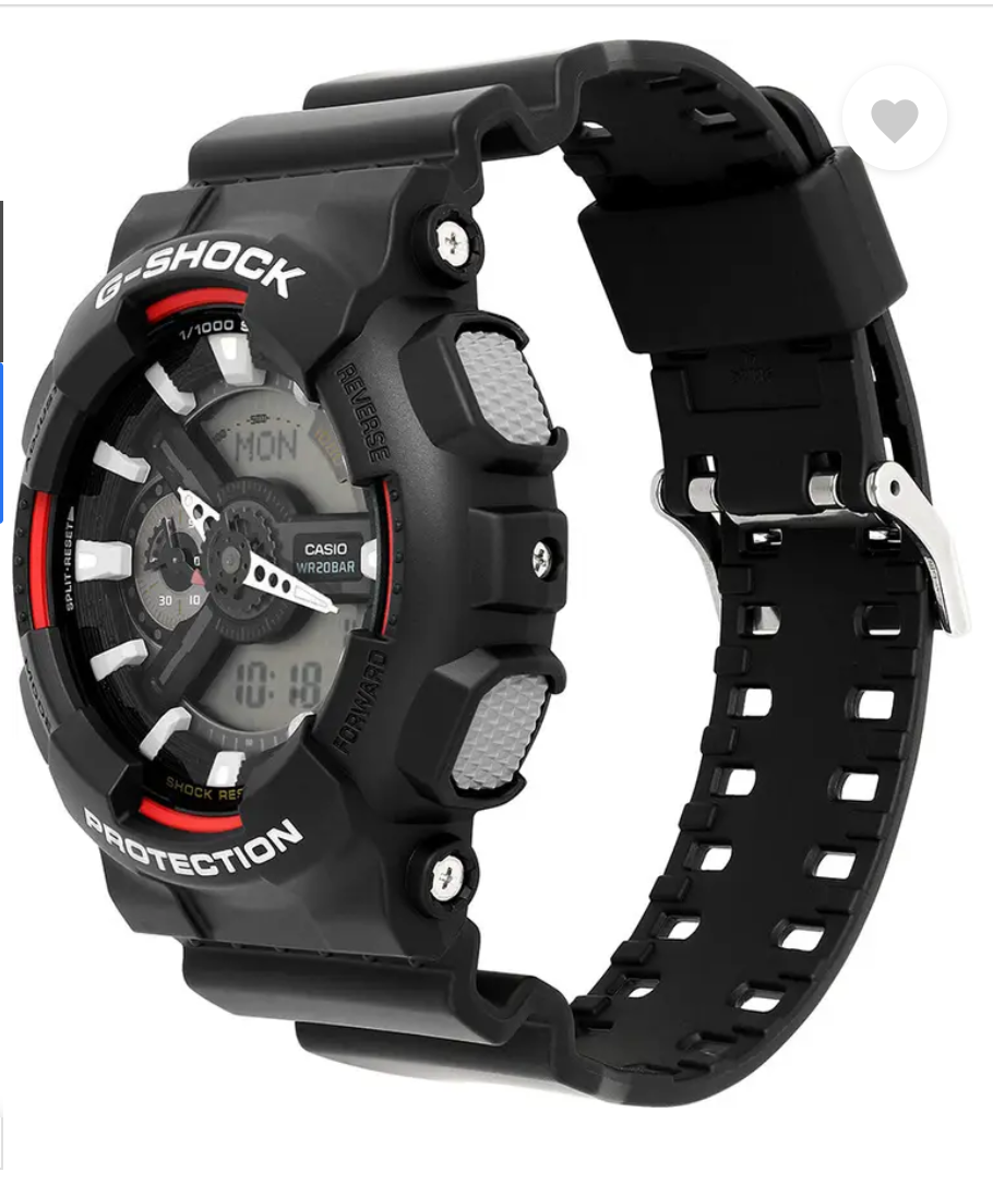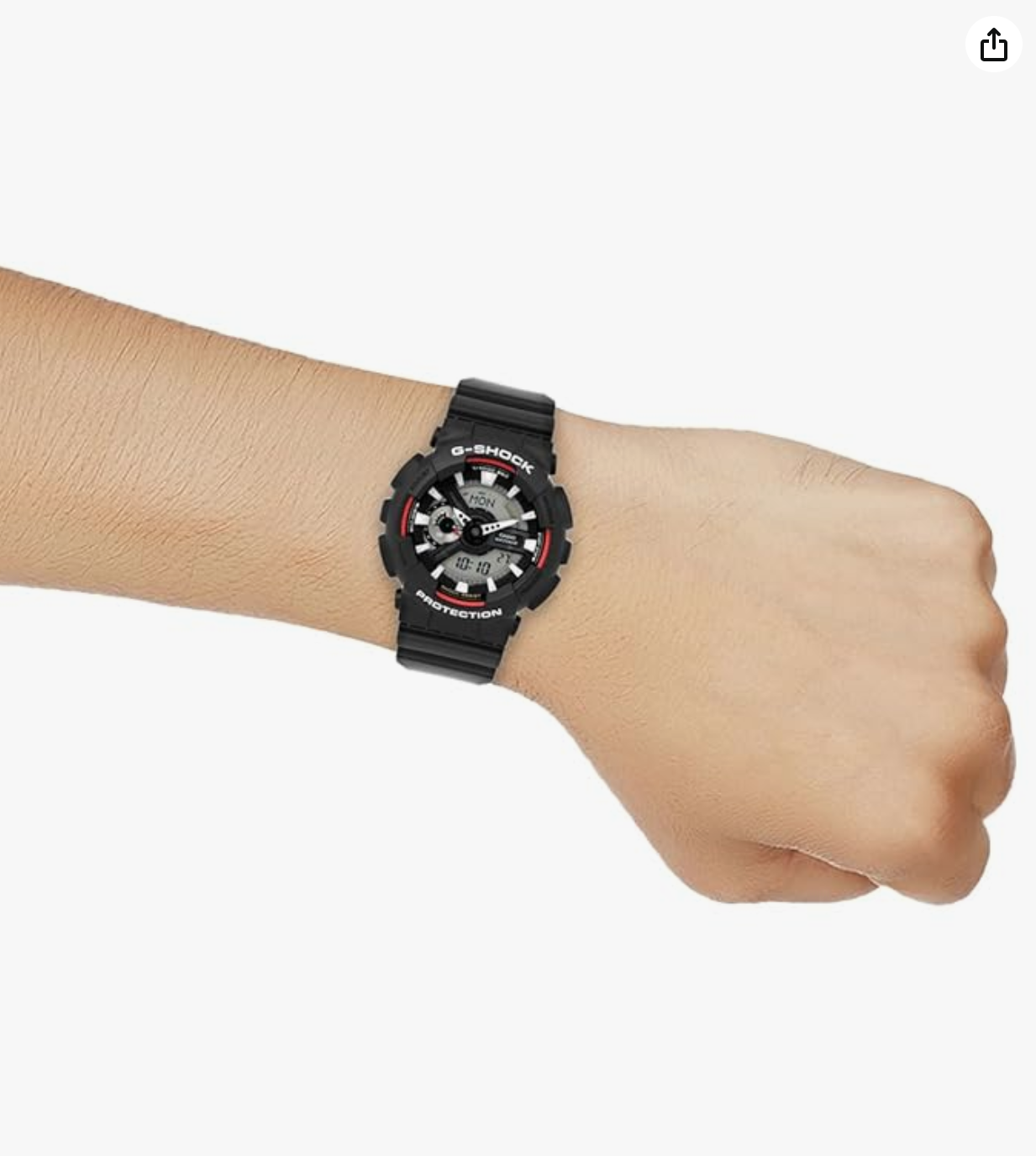 It exhibits crown for time adjustment. The resin strap flaunts a black