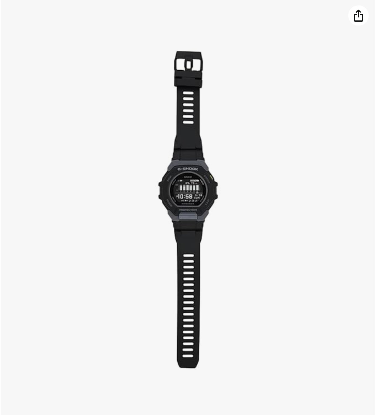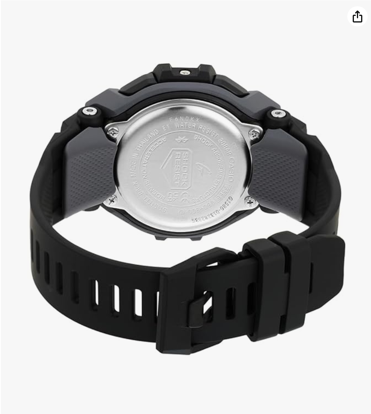 the G-Shock collection by Casio. Its resin strap showcases a black hue