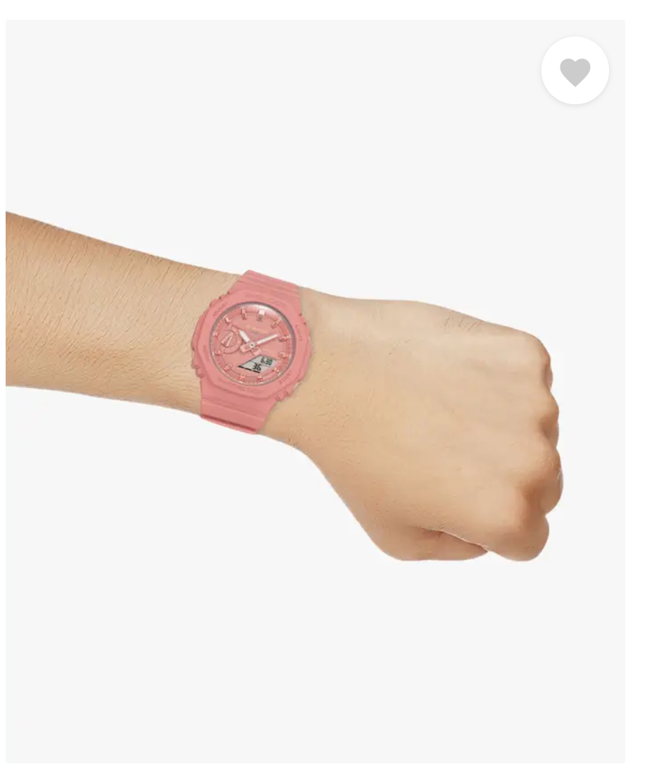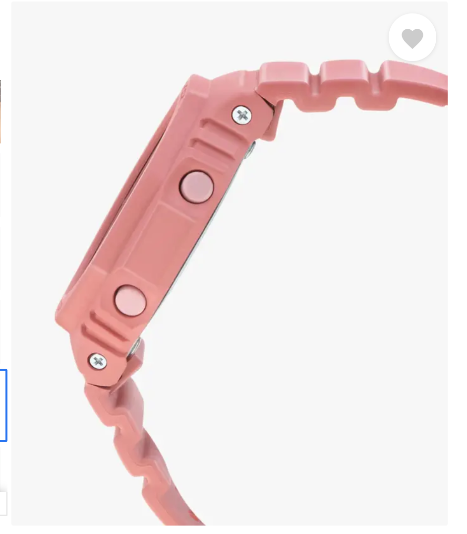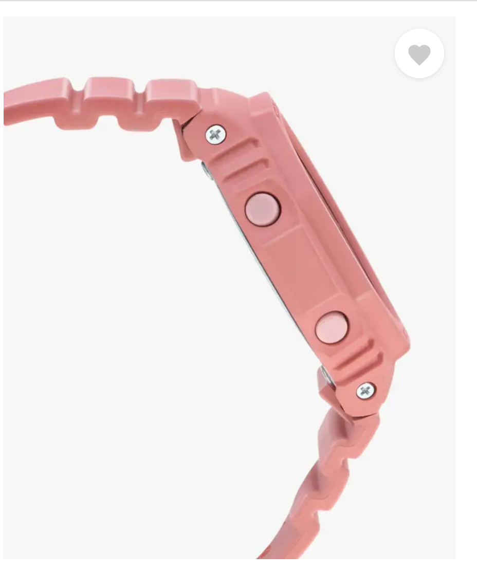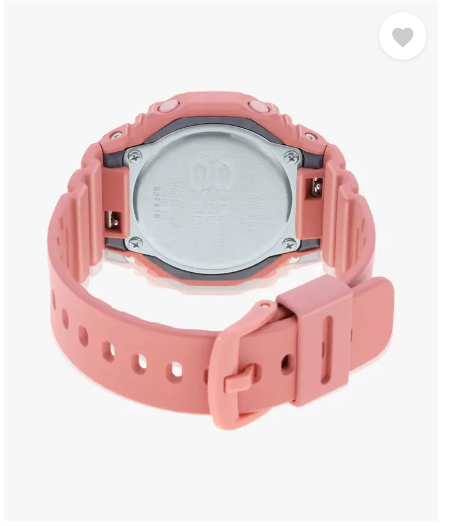 resin strap flaunts a pink hue that accentuates the look of the watch.