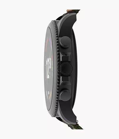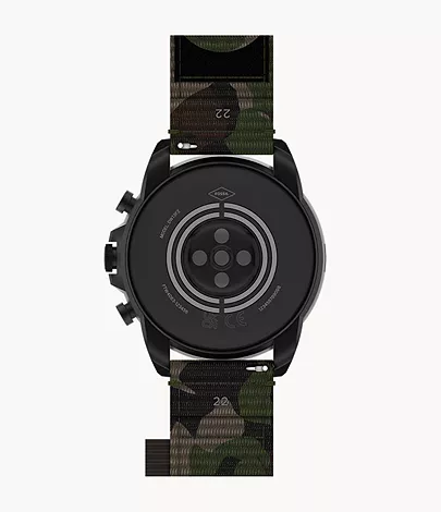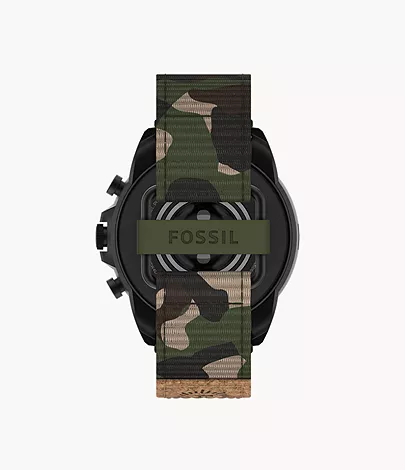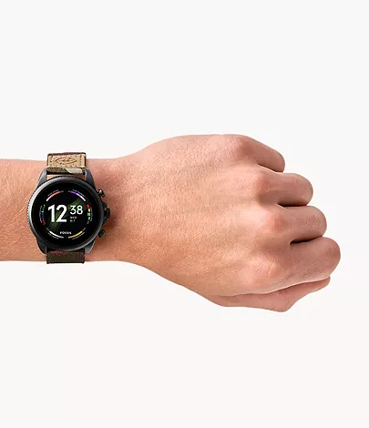 Way more. Way faster. This 44mm Gen 6 touchscreen smartwatch features a green camo 100% rPET strap, 2x faster charging speed (80% in a little over 30 minutes), Qualcomm 4100+ technology and tons of personalisation options.