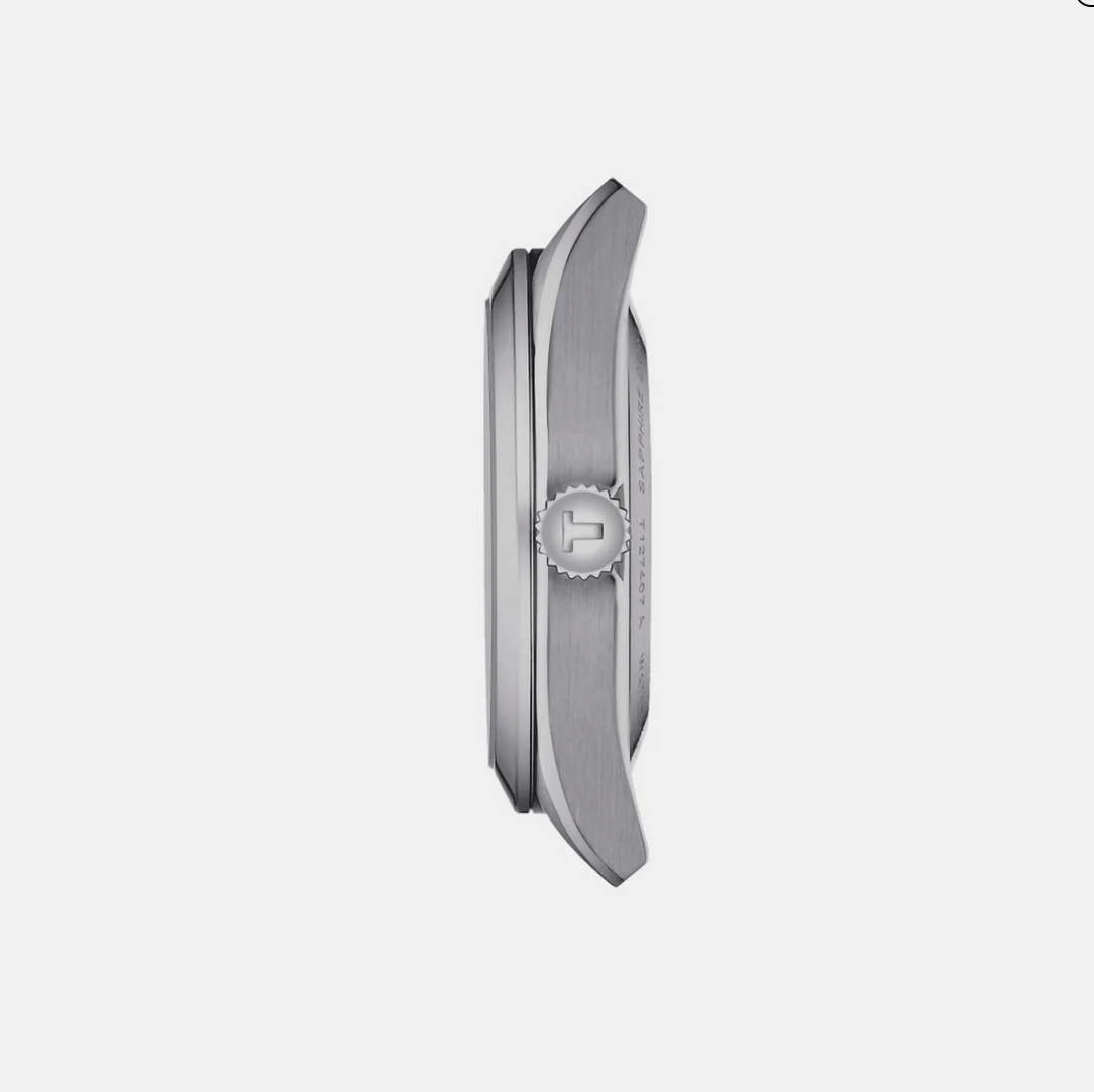 The ice blue dial of the T1274071135100 feels both contemporary and serene, bringing a fresh visual character to a classically balanced design. Its crisp tone plays with light, giving the watch a lively yet composed personality on the wrist. The refined layout and polished finishing lend an air of subtle sophistication.