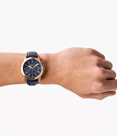 With rich blue leather and punctuated Roman numerals, our classic Grant watch has everything you need for a best-dressed season. This Grant watch also features a chronograph movement.