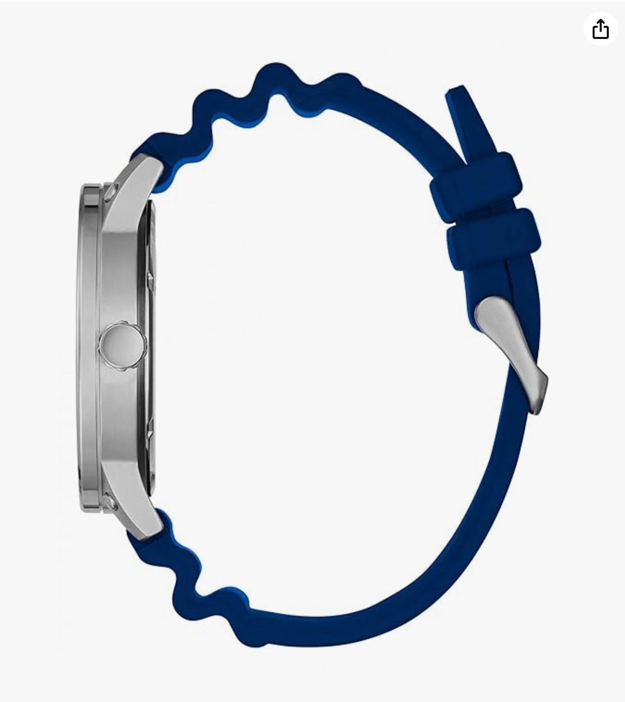 crown for time adjustment. The silicon strap exudes an attractive hue