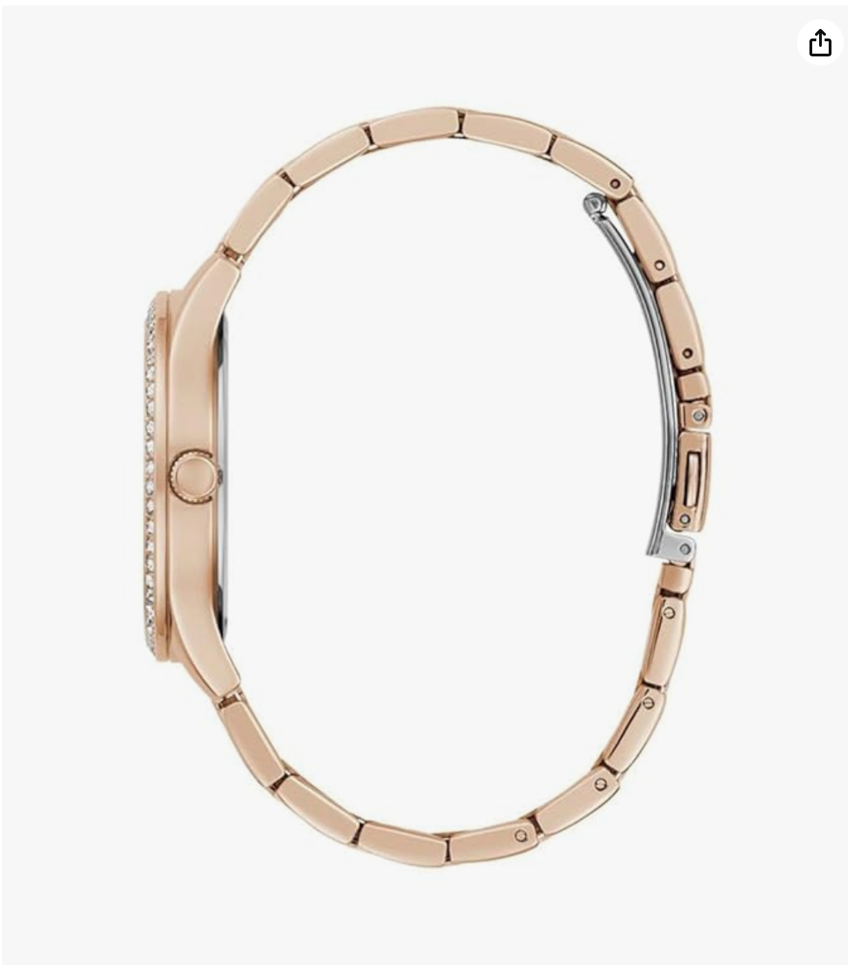 Guess. Housed in a 38 mm case, the dial is shielded with mineral glass