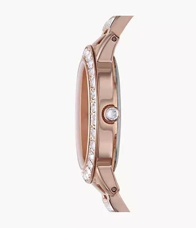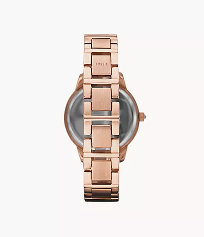 This matte and shiny rose gold-tone IP stainless steel watch is the epitome of chic. This Jesse watch also features a three hand movement on a stainless steel bracelet.
