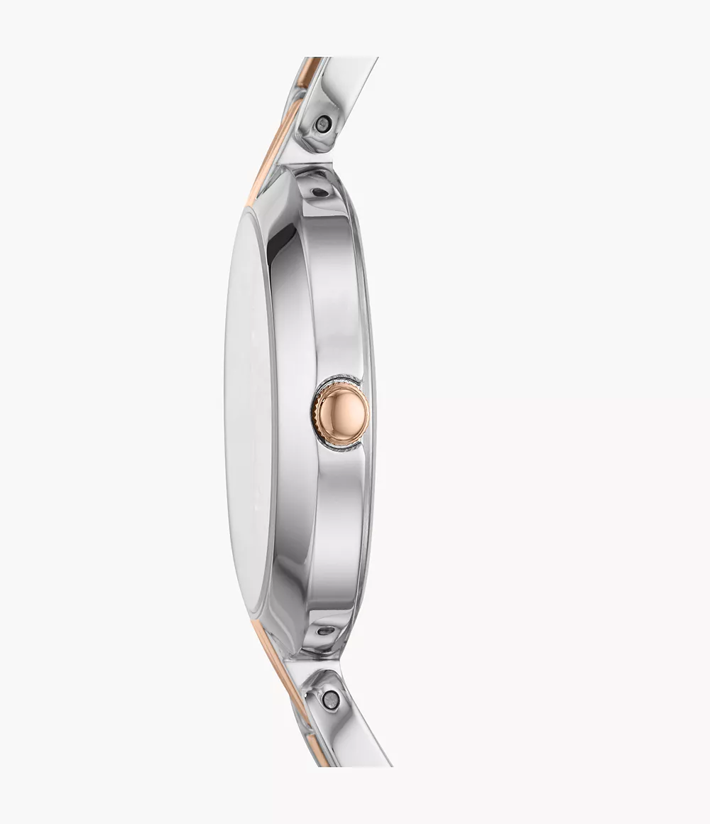 This 32 x 40 mm Kerrigan features a sunray dial with glitz accents, three-hand movement and two-tone steel bracelet.